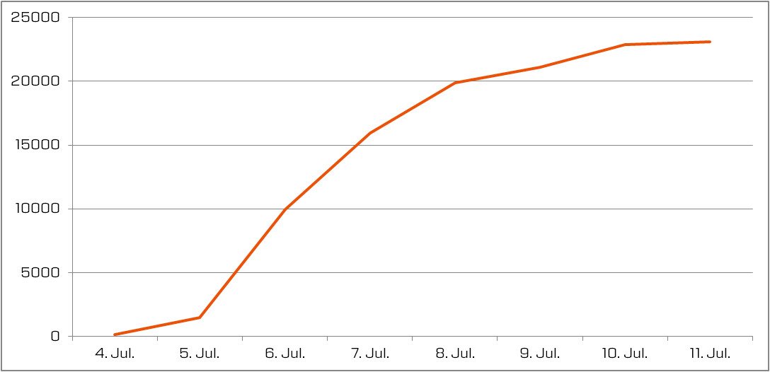 Seinen Ausgang nahm der Post am Samstag, 4. Juli, die stärkste Steigerung erfuhr er dann in den zwei Folgetagen, Sonntag und Montag. Am Wochenende ist die Interaktionsrate in der Regel bei Facebook am höchsten (Die Infografik aus dem Jahr 2012 ist zwar älter, zeigt jedoch die Tendenzen sehr gut). Daher konnte der Post am Sonntag und in der Folge am Montag am stärksten steigen. Nach Erreichen der 20.000er Marke am fünften Tag flacht die Kurve ab.